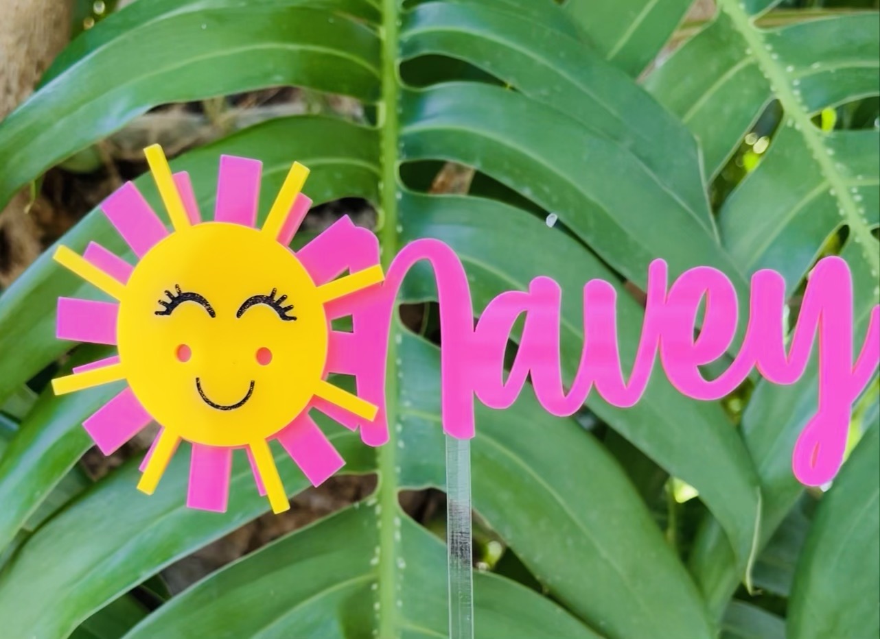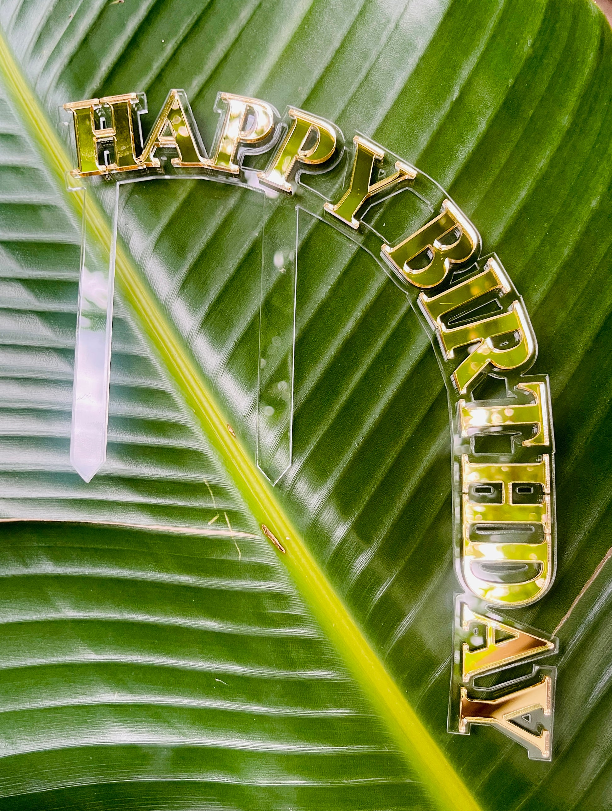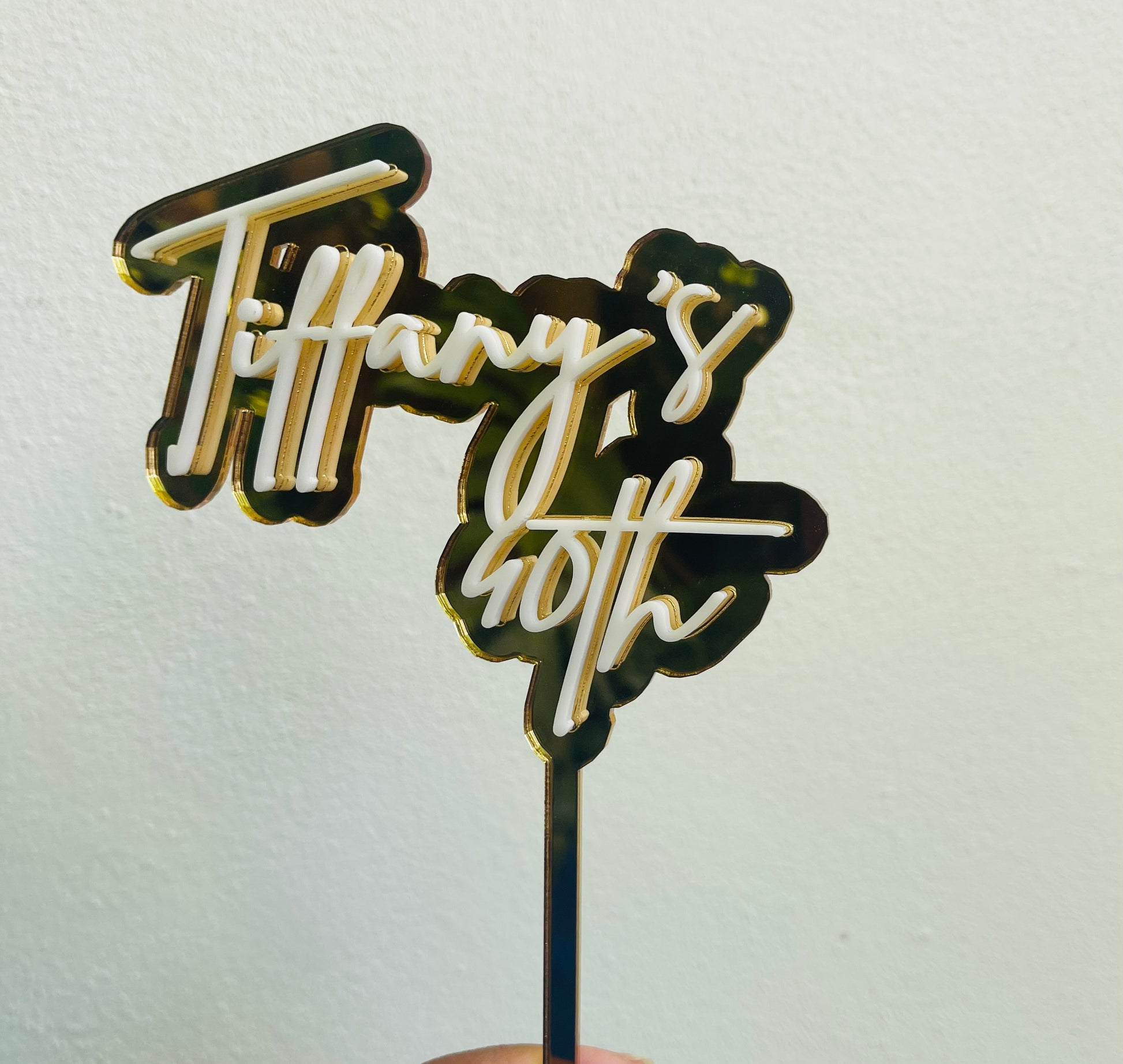 Our laser cut topper are made with ⅛” thick acrylic at the bottom and the top layer is 1/16 inches thick acrylic based on inventory. If 1/16 is unavailable 1/8 inch thick with be substituted. The double layers are sturdy but can break if dropped or handled roughly. Longer words are often more fragile. These names are made by hand with love. Slight variations should be expected. A mock will be sent prior to printing.