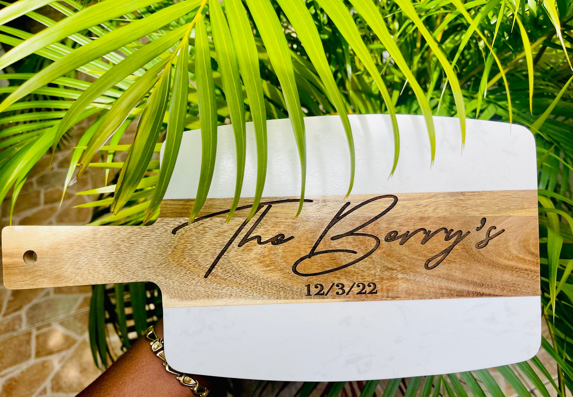All boards are hand washed after engraving and treated with food grade cutting/serving board oils.