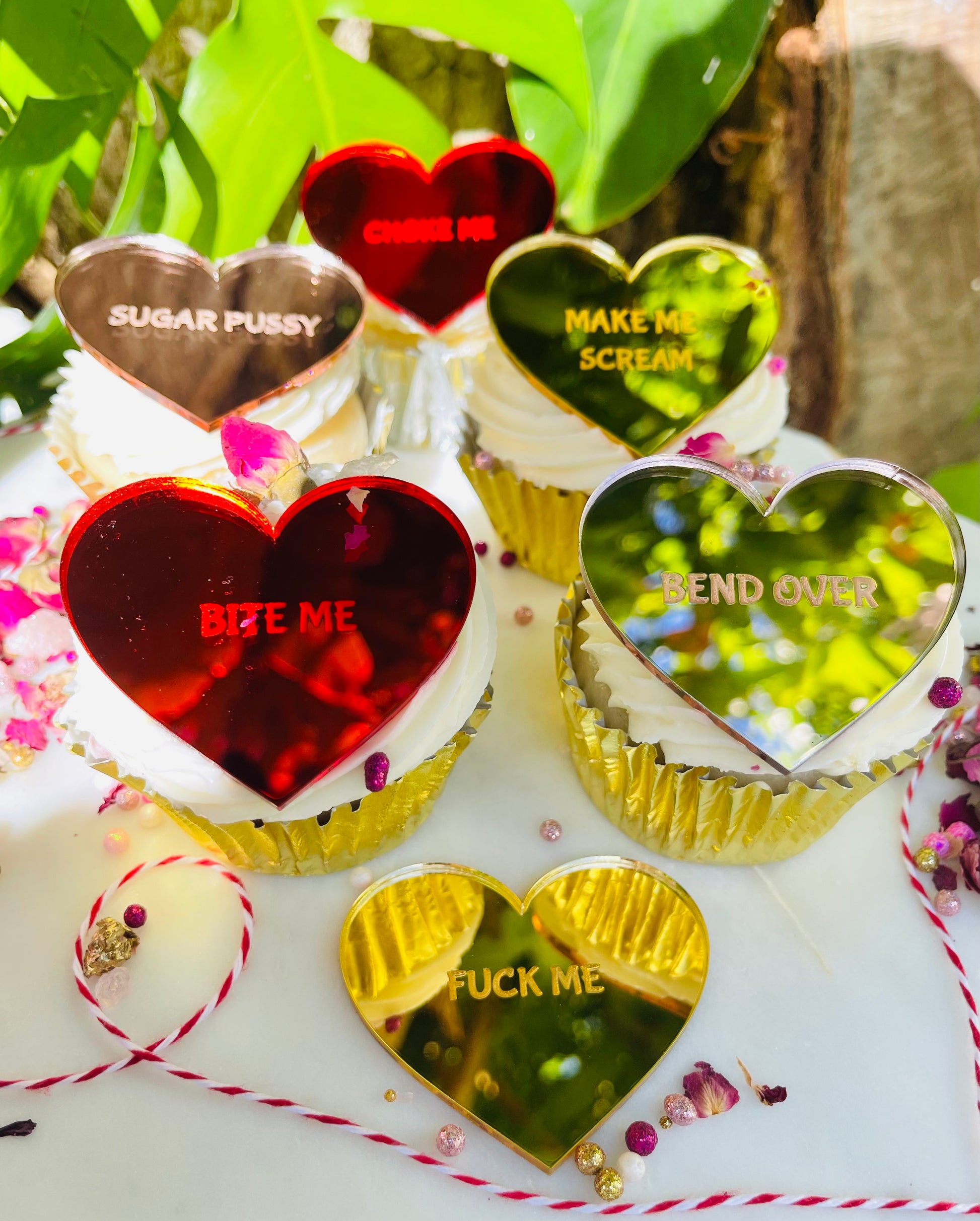 6 Cupcake/Cake/Treat Charms. Red, Rose Gold, Gold acrylic.