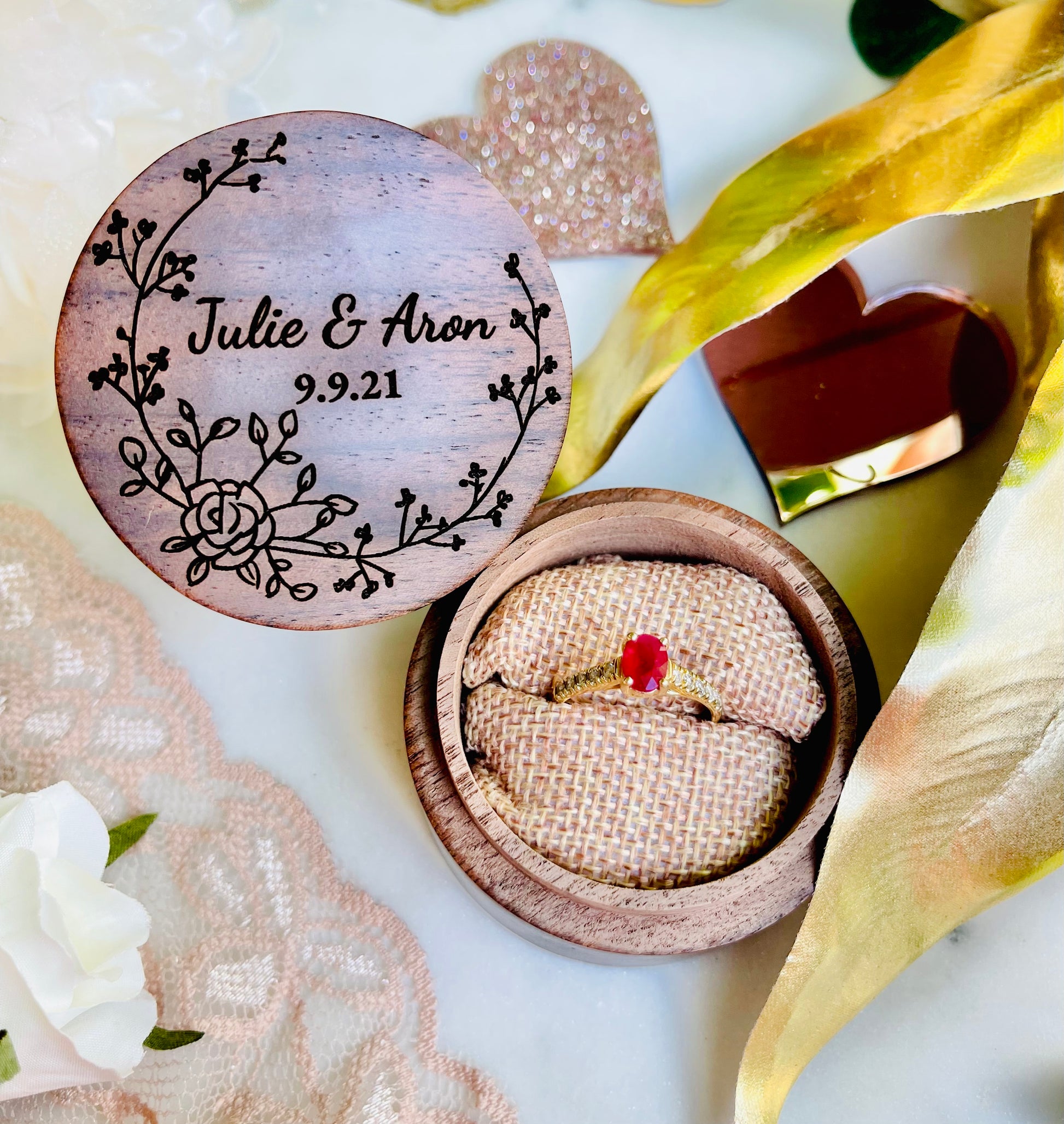 Walnut Round Ring Holder W/ Magnetic Closure.