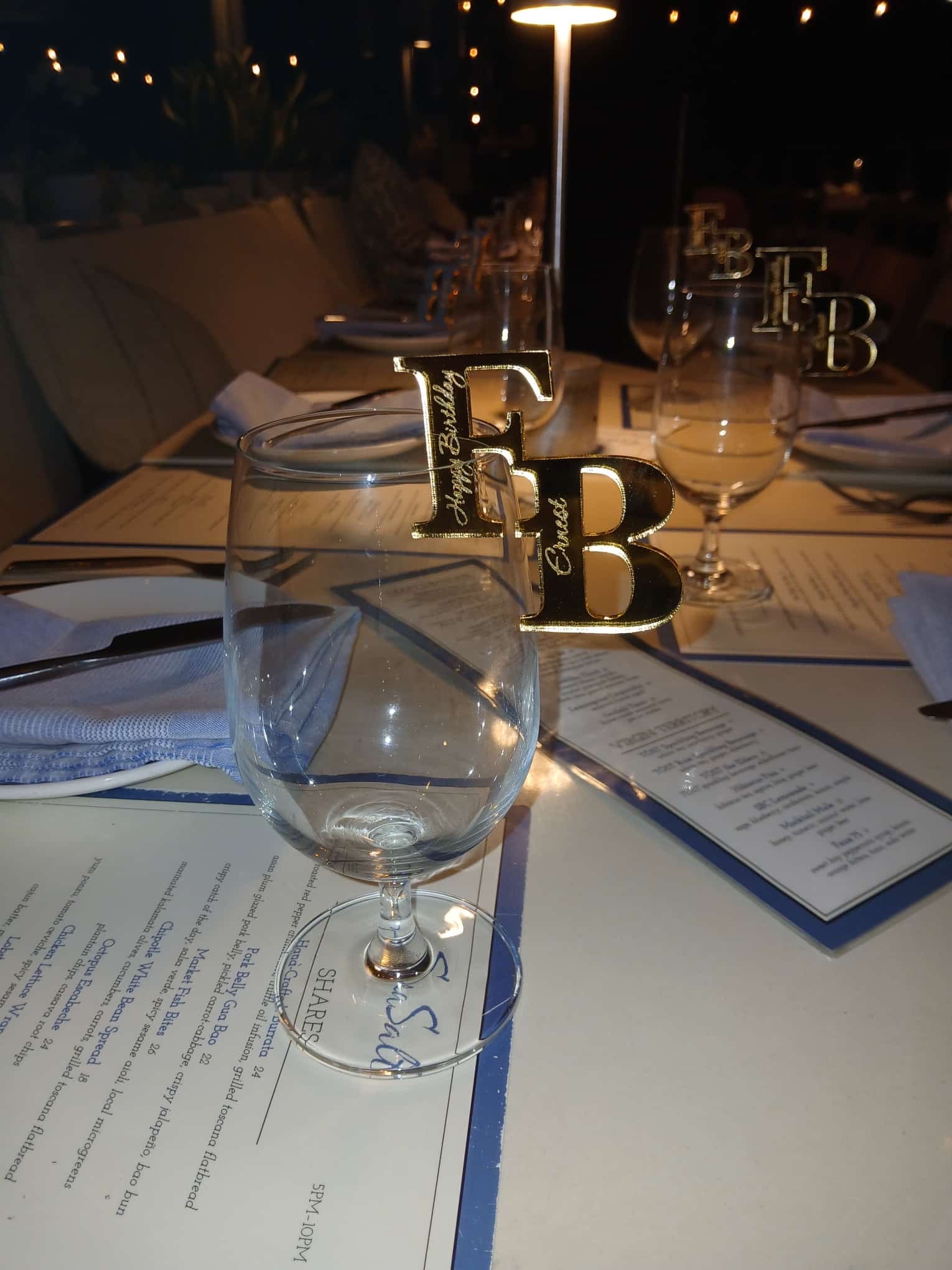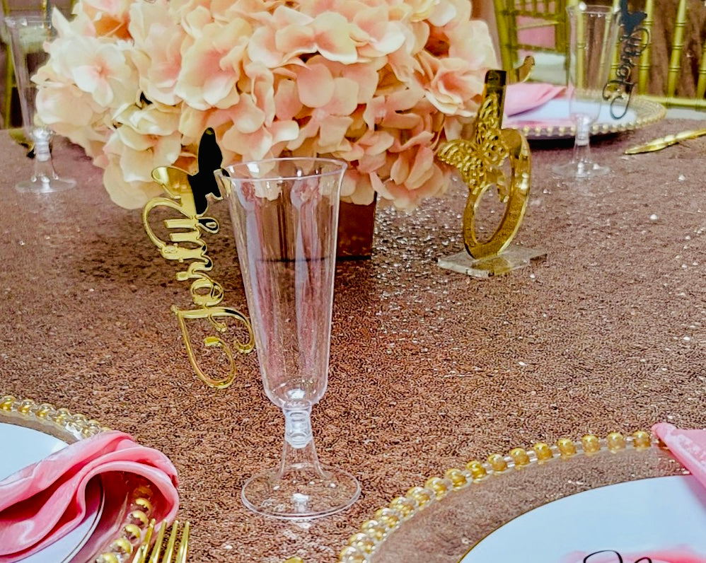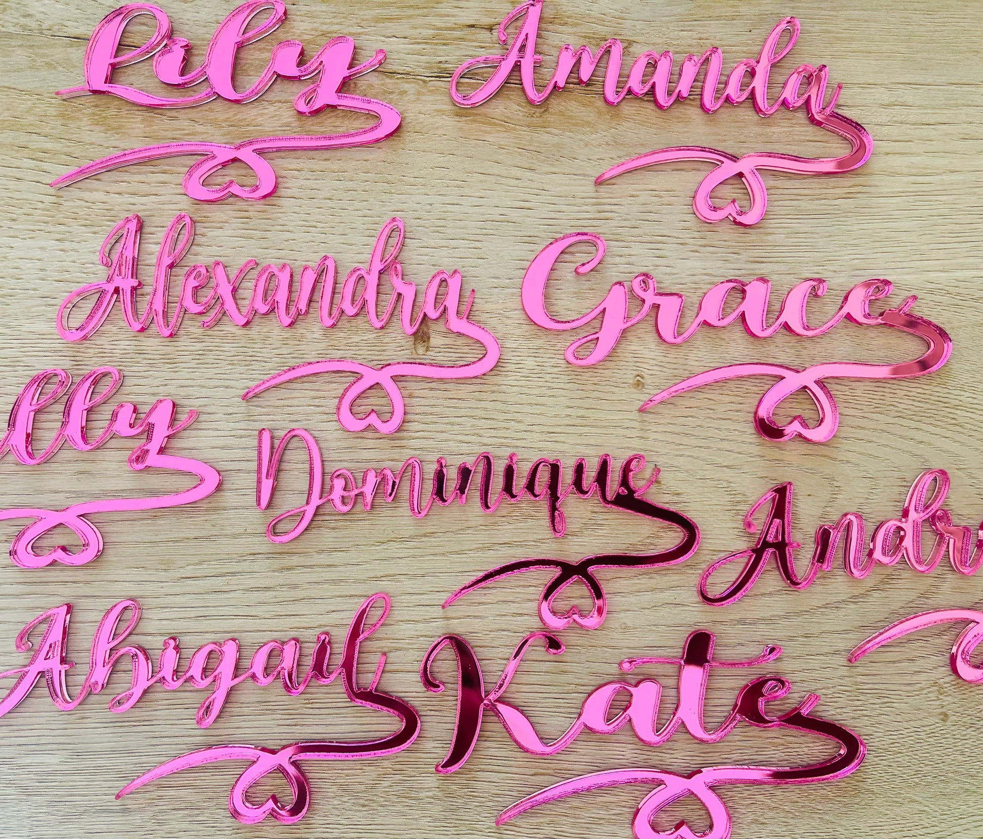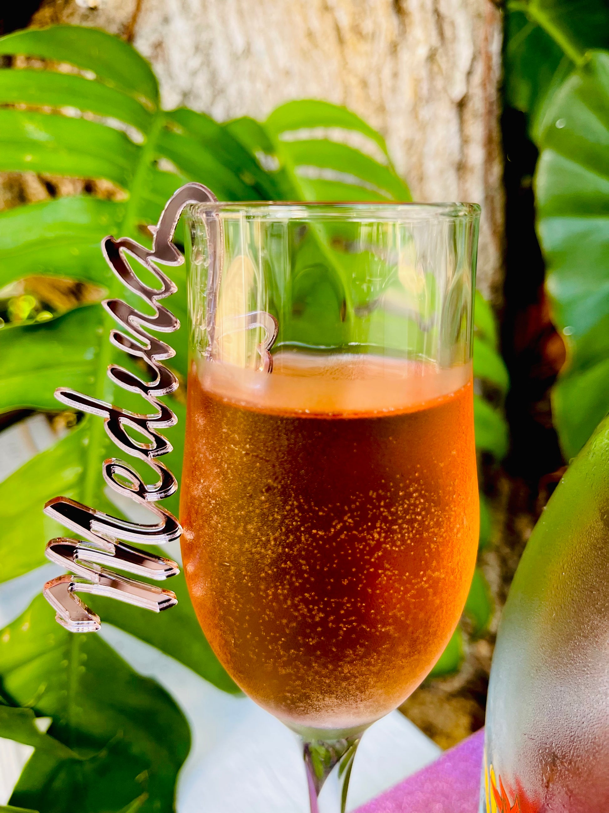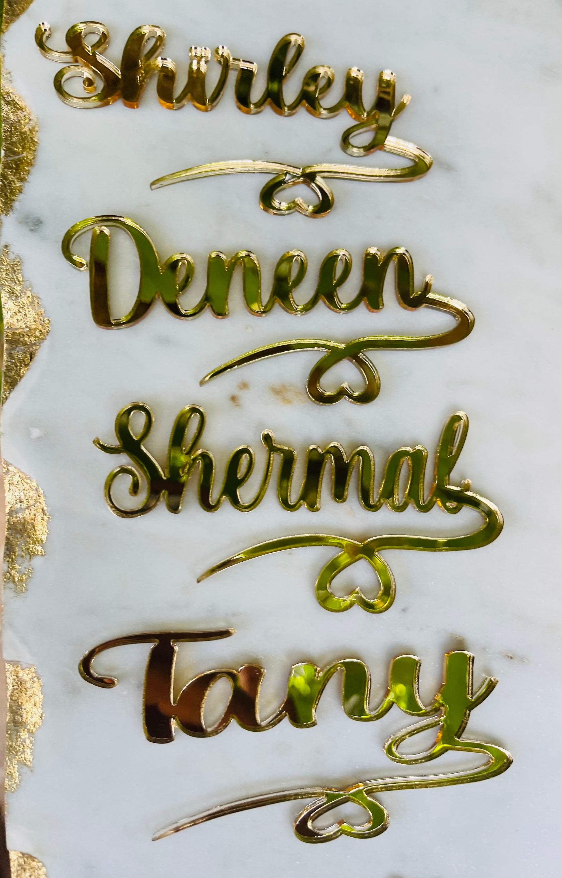 Add personalization to your settings with these custom names. They fit perfectly with champagne flute glasses but can work with other glasses.
